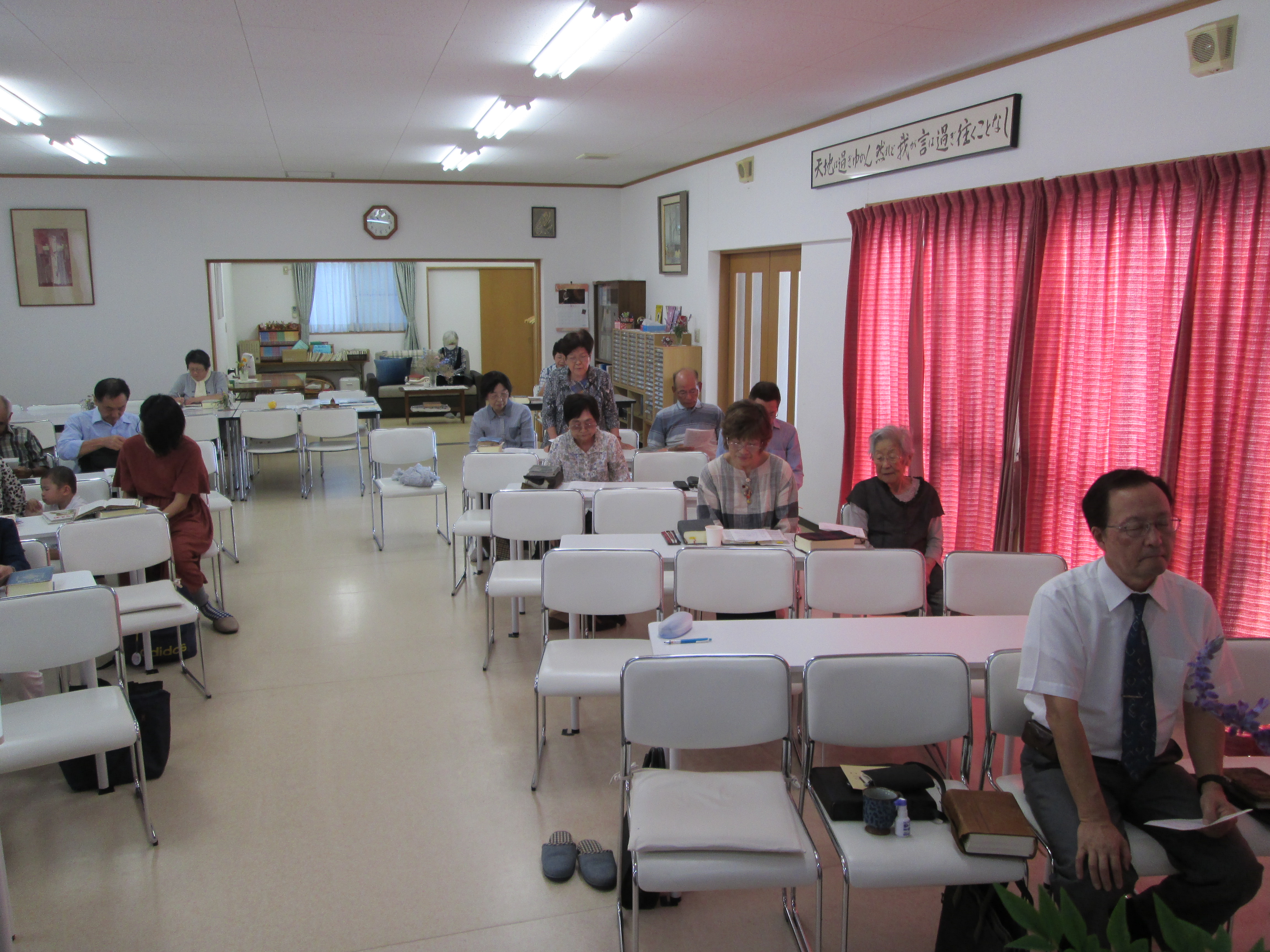 | 2019年 10月 6日 主日礼拝 礼拝前賛美練習です。今日は小森牧師も参加され、聖歌640と557を賛美しました。 プレイズタイム「フリー」 挨拶タイムです。中央に娘と孫を発見。 暗唱聖句 創世記22章14節をキミ姉と宮崎姉と加藤姉が暗唱されました。 小森牧師のメッセージは、創世記25章から「イサクの試練」の題で、イサクは四十歳 の時にリベカを妻に迎えた。そして、六十歳の時に二十年間の祈りを経て、主は イサクの祈りを聞き入れ、エサウとヤコブが生まれた。私たちクリスチャンの祈りは、 せっかちに結果を求める。家族や隣人の救いの道を忍耐をもって、神に祈り続けたい。 トップページに戻る |