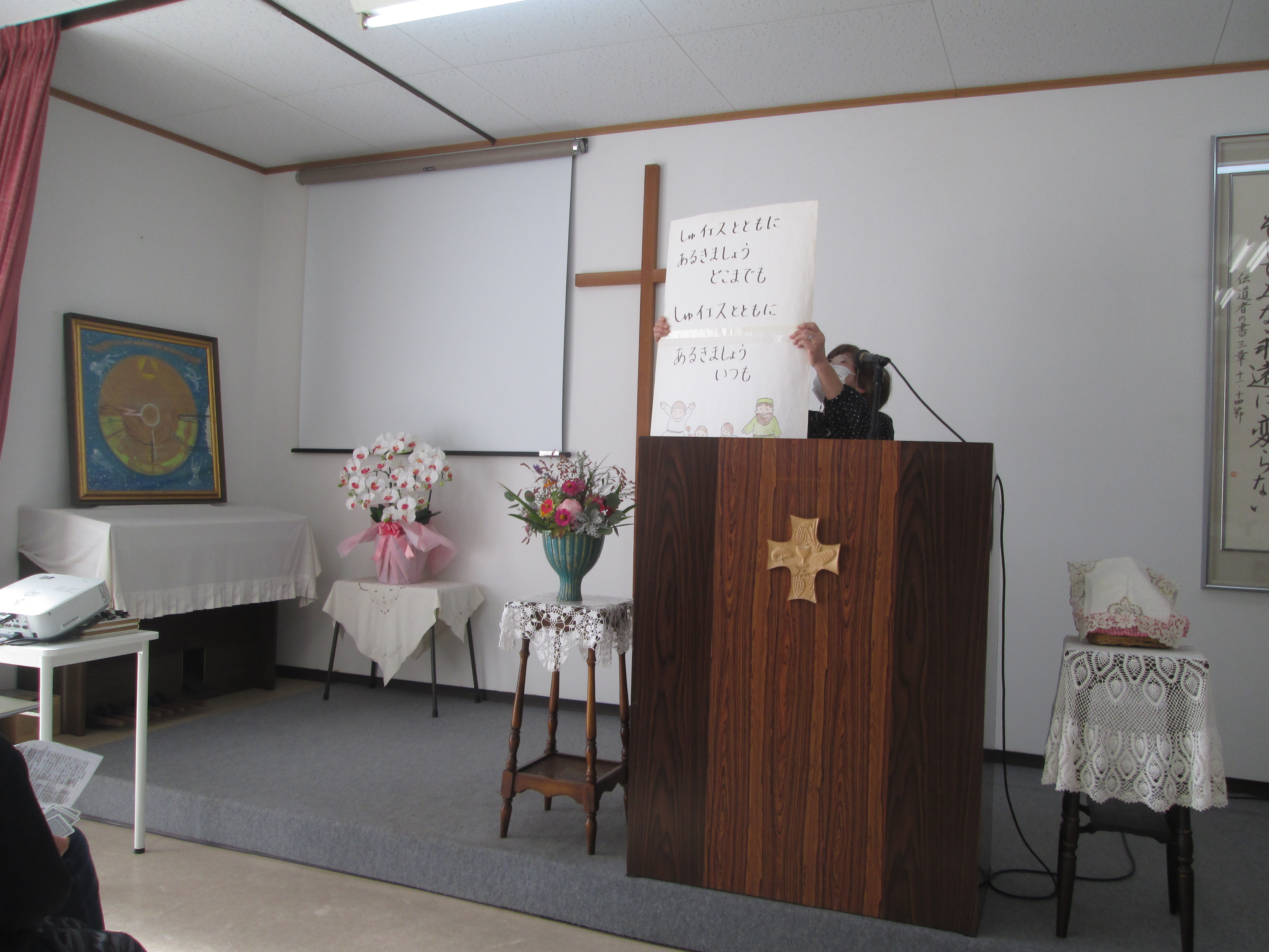 司会は宮崎姉です。今日は子供祝福礼拝です。